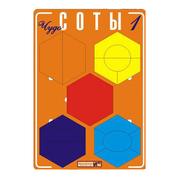 - 5 фигур-вкладышей в форме сот (фанера, пленка красного, желтого, синего, зеленого, оранжевого цветов): 1 целая и 4 составные (из двух, четырех и пяти частей);