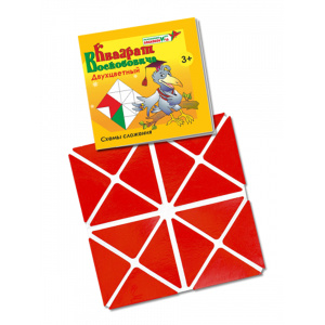 Состав: На квадратную основу из ткани (140х140 мм) нанесены треугольники из плотного картона. Одна сторона "Квадрата" - красная, другая - зеленая; альбом схем.