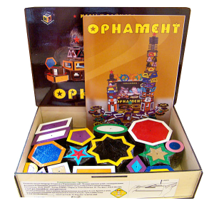 Половина фигур — рамки, половина — вкладыши. Учебное пособие развивает художественное воображение, чутьё. Орнамент — пособие для дошкольников и школьников.