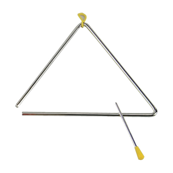Треугольник - музыкальный инструмент, подвешивается за один из углов на тонкой проволоке или тесьме, которую держат в руке или прикрепляют к пюпитру.