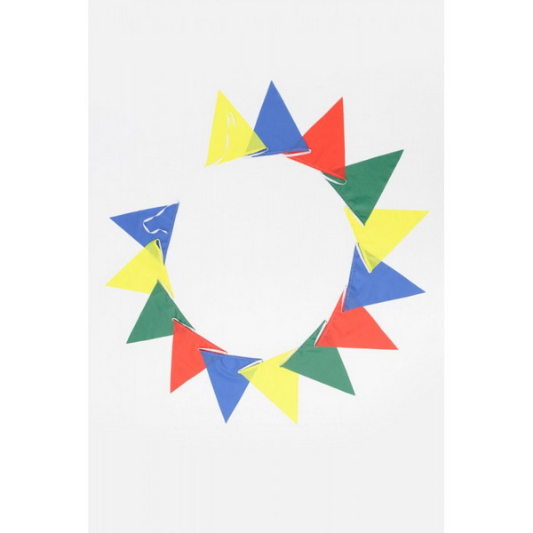 Флажки на шнуре могут использоваться в спортивных и сюжетно-ролевых играх. Флажная лента изготовлена из синтетических тканей разнообразных расцветок.