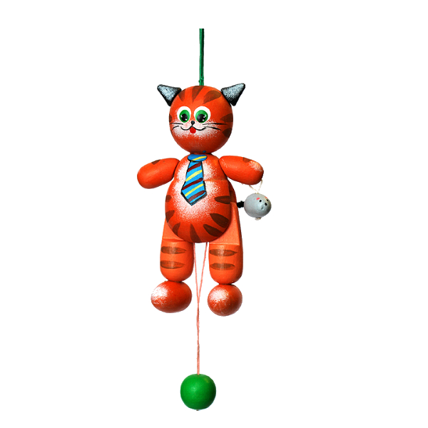 Дергунчики - старинные деревянные игрушки. Если дернуть за шарик, который находится снизу, игрушка будет двигаться. Этот очаровательный рыжий кот в галстуке развеселит любого малыша. Размер: 70 x 40 x 125 мм. Материал: дерево. Ручная роспись. Производитель: Россия.