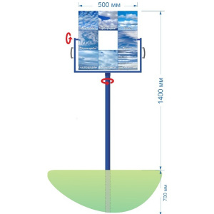 Каркас выполнен из стальной профильной трубы 40х60х3 мм, ножка из стальной профильной трубы 40х60х3 мм, вращающаяся часть - стальная профильная труба 20х20х2 мм. Панель - композит з мм с полноцветной печатью с защитной ламинацией. Порошковая покраска.
