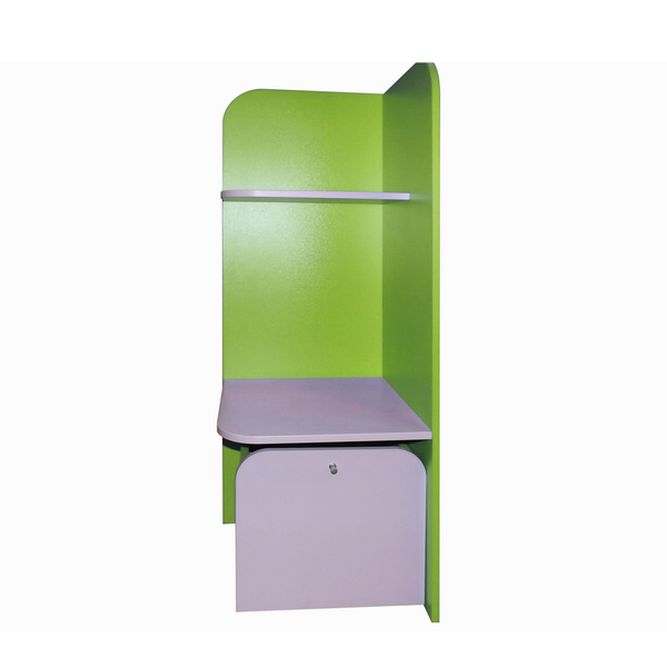 Уголок оснащен выдвижным ящиком на роликовых колёсах.