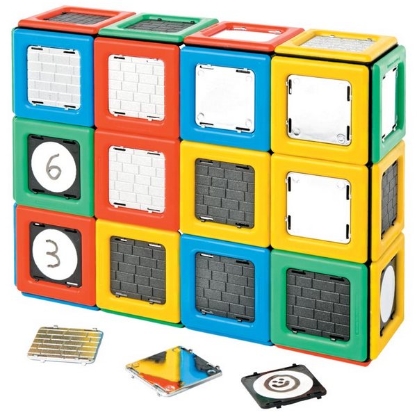 Для более увлекательного и разнообразного конструирования, квадратные детали конструктора можно дополнять зеркальными панелями или панелями для надписей.