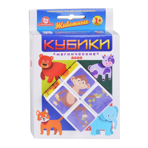 В наборе 4 магнитных кубика - каждая из шести сторон притягивается к другой.