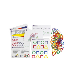 Представлены 3 типа геометрических фигур: круг, треугольник, квадрат. В наборе 20 двухсторонних карточек с заданиями.
