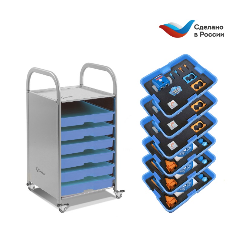 - 81 аксессуар для создания препятствий на пути робота: 24 палочек, 36 кубов, 6 конусов, 6 флажков, 6 мячей и ворота,