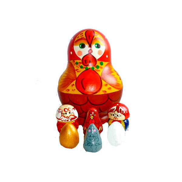 Шесть небольших фигурок помещаются в красивый красочный футляр в виде курочки.