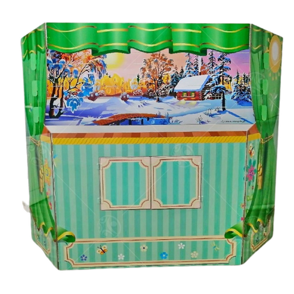 Напольный кукольный театр мобильный, он легко складывается, при хранении занимает мало места.