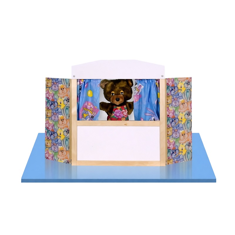 Пользоваться ширмой очень просто — поставьте её в устойчивое положение на стол, тумбу или любую другую ровную поверхность, а за ней в центре показывайте спектакль. Даже если в наличии нет специальных кукол для театра, можно использовать обычные игрушки.