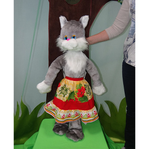 Мягконабивная кукла Кошки практически соразмерна росту ребенка. Дети могут управлять ее действиями, поскольку кукла имеет на ногах, руках и голове специальные элементы для фиксации к телу кукловода.